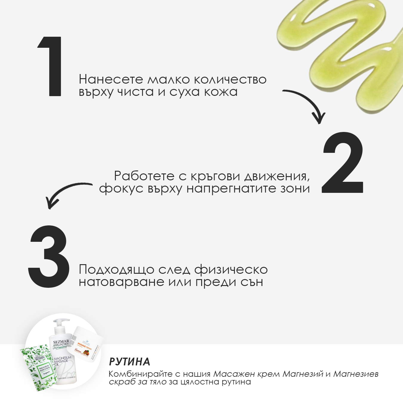 Избери според целта: релакс/възстановяване, антицелулит или ежедневен масаж. Ако се колебаеш – вземи “базисно” като универсален избор.